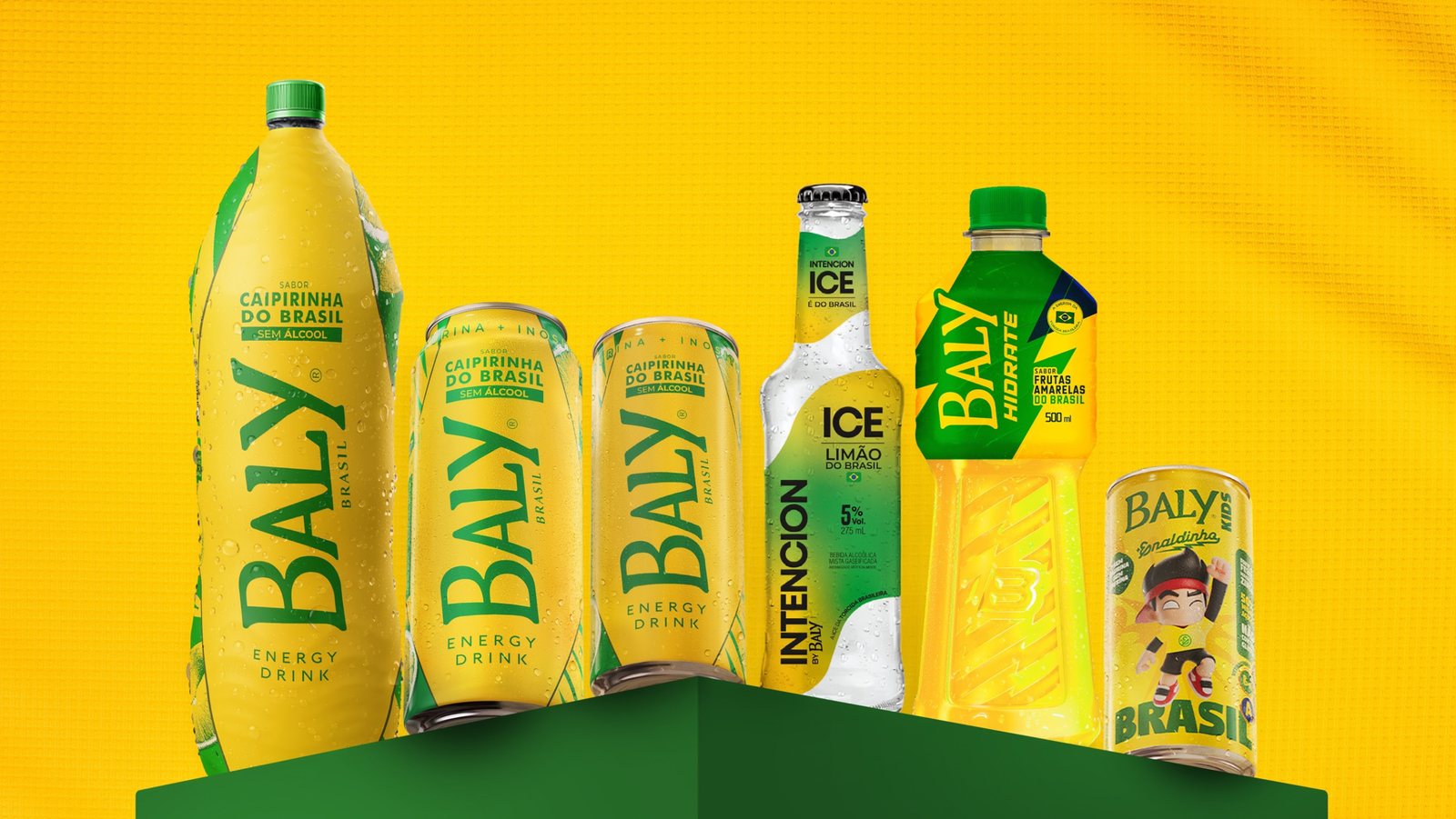 A coleção traz três versões do Baly Energy Drink Caipirinha do Brasil, nas embalagens de 250 ml, 473 ml e 1 litro, todas sem álcool.