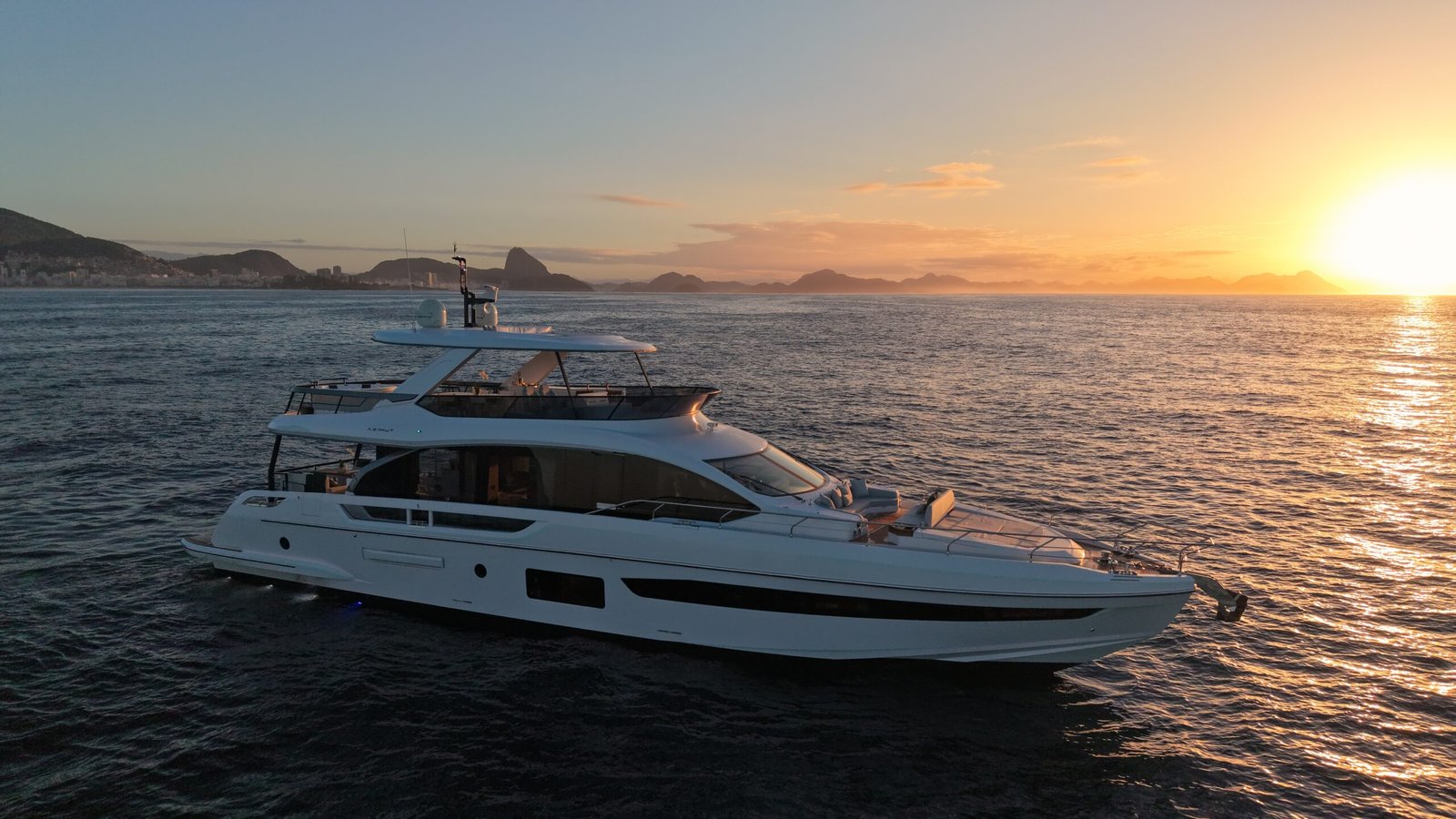O Azimut Grande 25 Metri chama atenção no Rio Boat Show, realizado na Marina da Glória, no Rio de Janeiro. A embarcação de 25 metros reúne soluções inspiradas na hotelaria de luxo e em residências de alto padrão.
